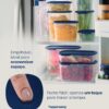 Seu design modular e empilhável maximiza o aproveitamento do espaço, permitindo que você organize sua cozinha de maneira eficiente. A tampa apresenta uma aba para abertura prática e rápida, tornando o acesso ao que está armazenado ainda mais fácil. Além disso, quando não está em uso, o pote se encaixa perfeitamente com outros recipientes, reduzindo o espaço necessário para armazenamento.